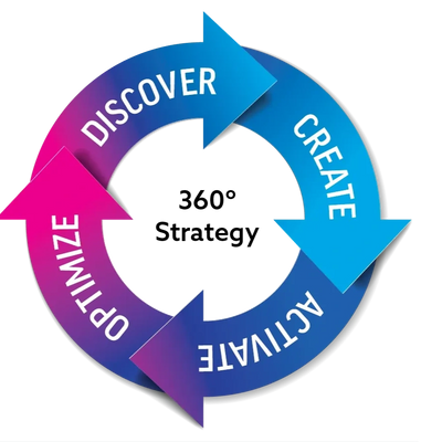 At Grace Media 360, every project runs through our 360º Approach — a continuous cycle designed to keep strategy, creativity, execution, and optimization connected at every step.